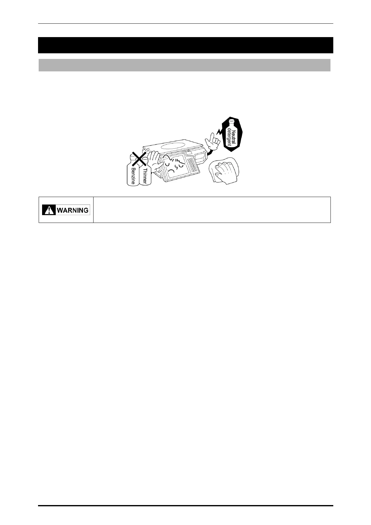 Do not use thinner, benzene, etc. Doing so may damage the original safety functions.