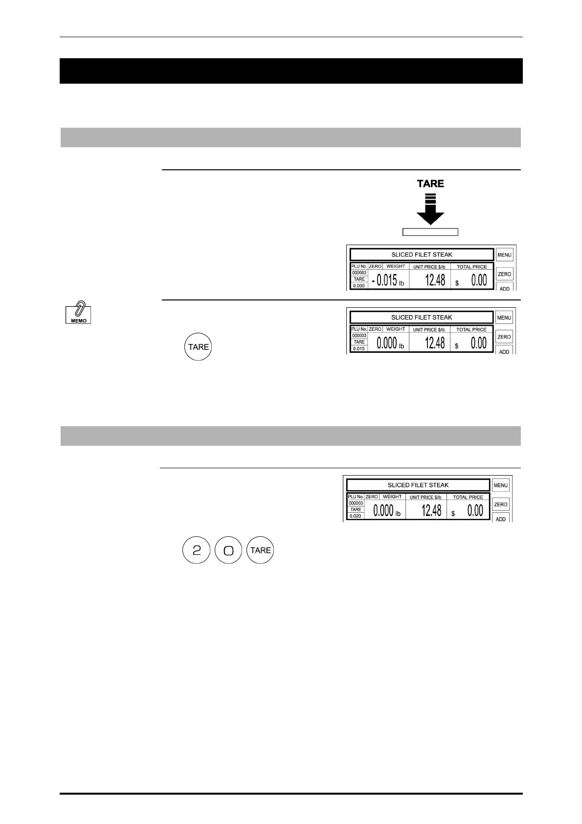 When the tare weight subtraction is required, select one of the following procedures to perform.