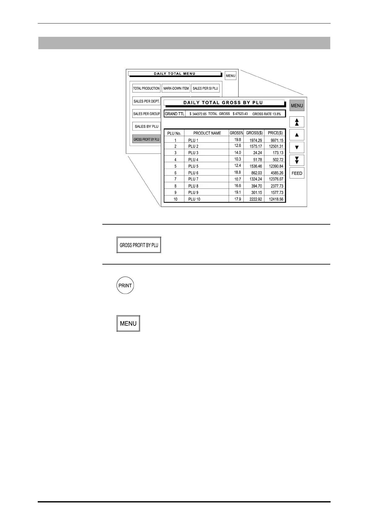 1. Touch [GROSS PROFIT BY PLU] on the screen.