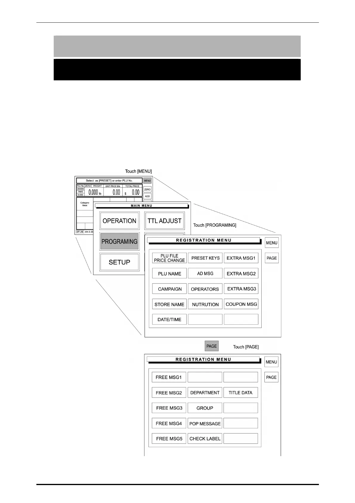 [MENU] first, and touch [PROGRAMING] to access to the Registration Menu