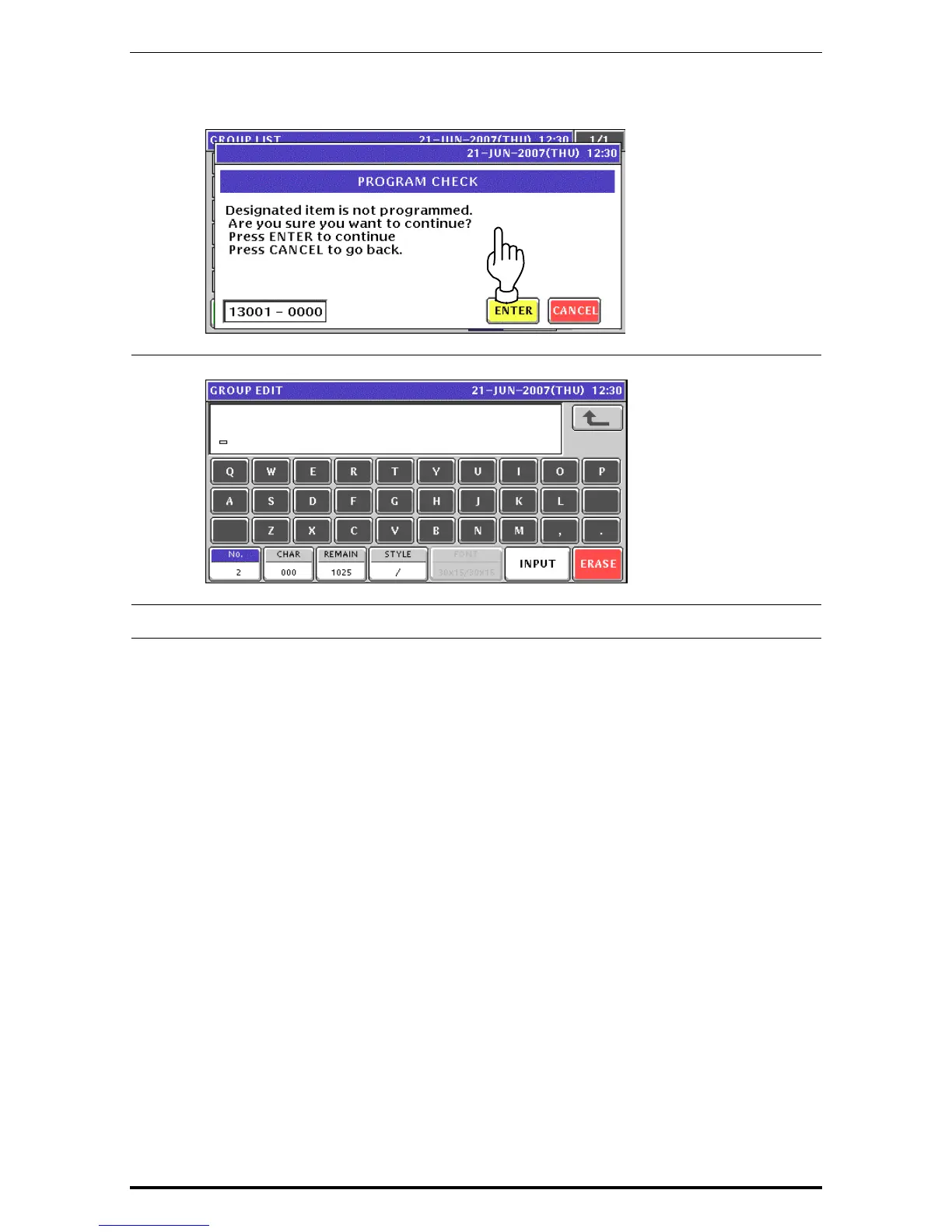 The confirmation screen appears. Then, press the [ENTER] button.