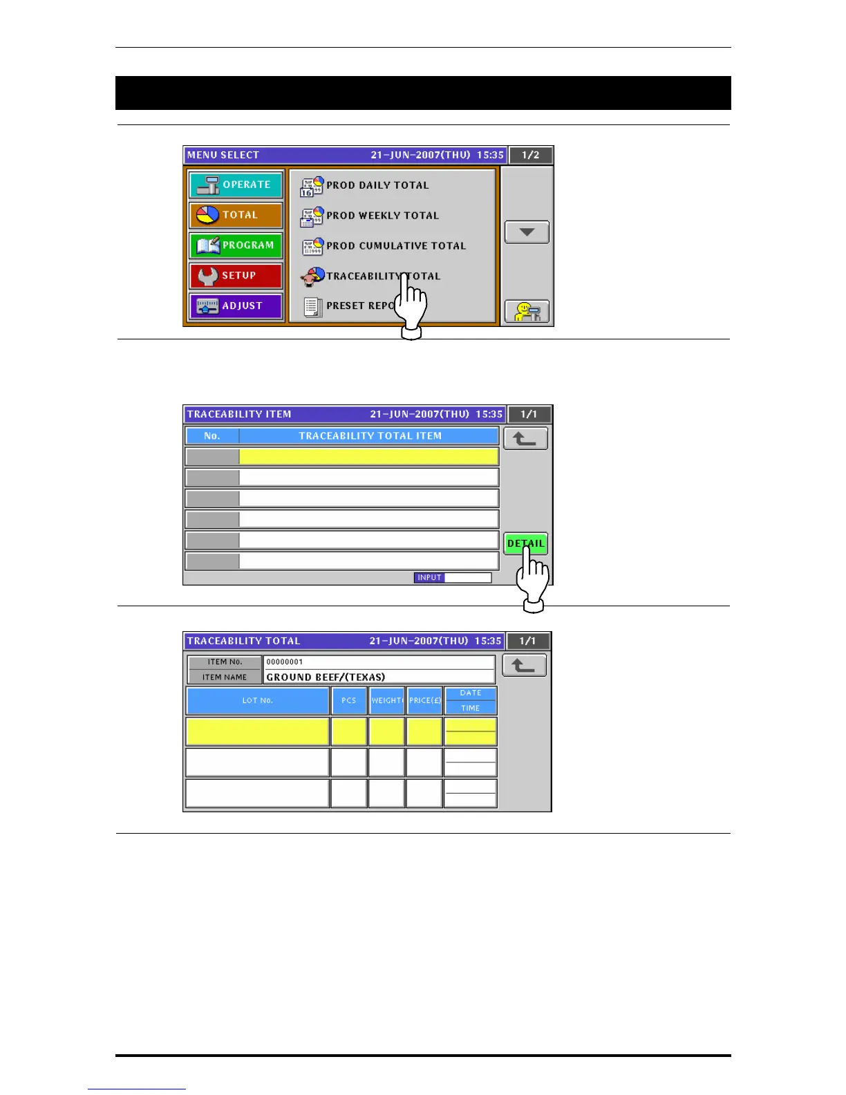 To obtain Traceability Total screen, press the [DETAIL] button on the screen.