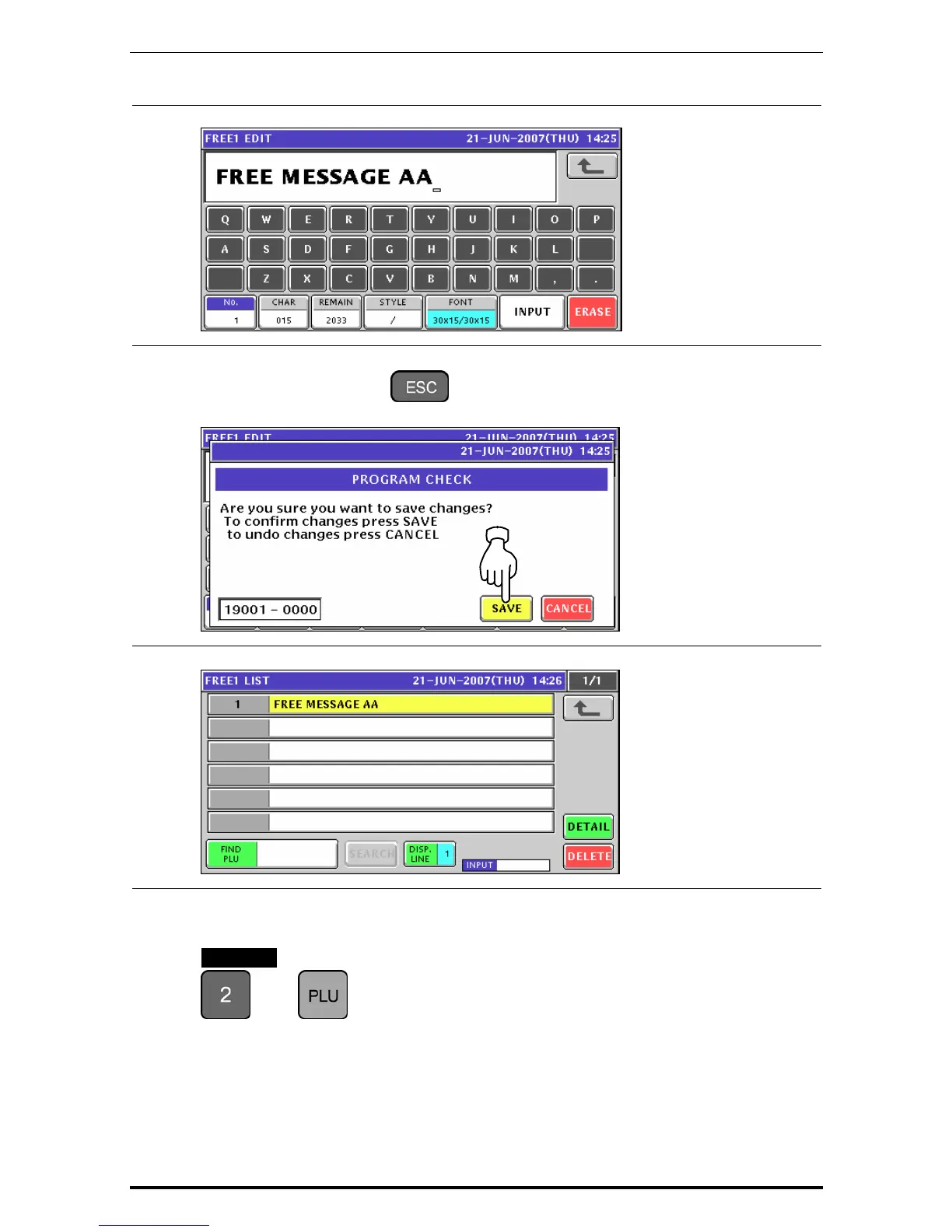 Enter a desired message number using the numeric keys and press the [PLU] key on the