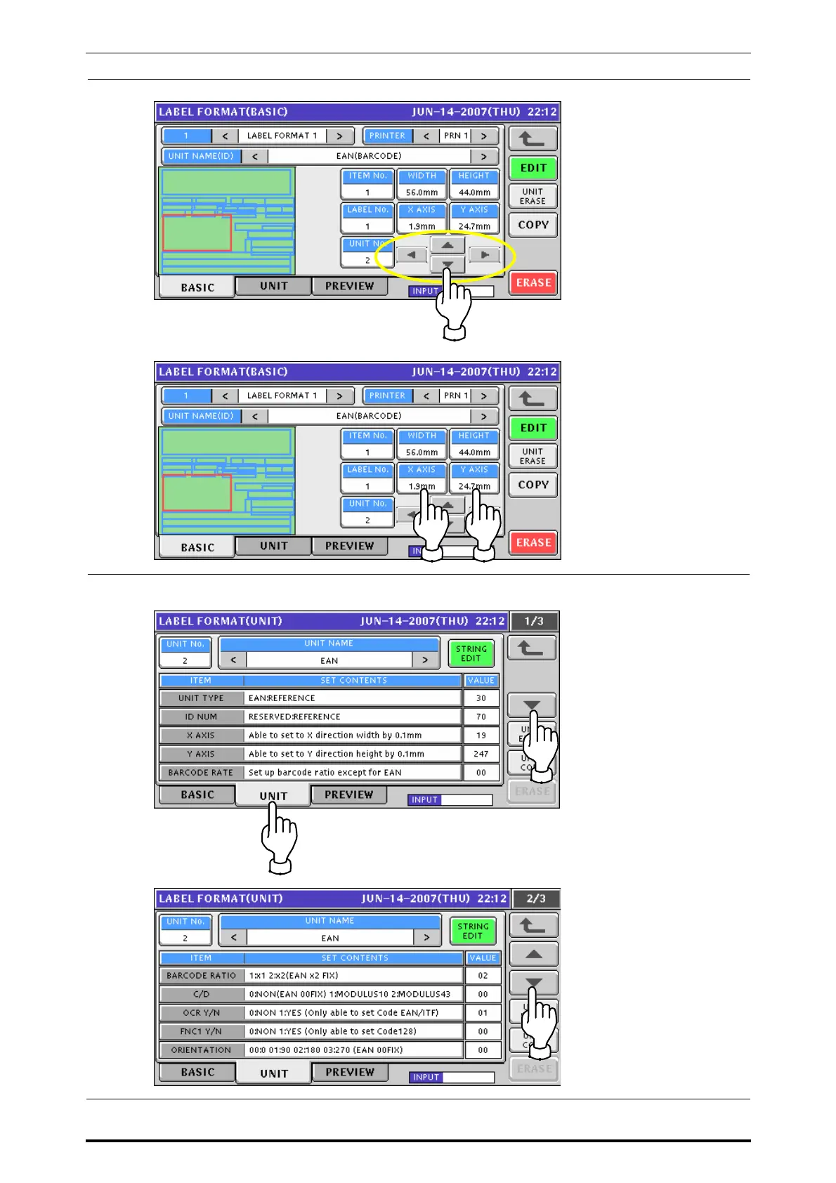 To display the Label Format (Unit) screen, press the [UNIT] tab.