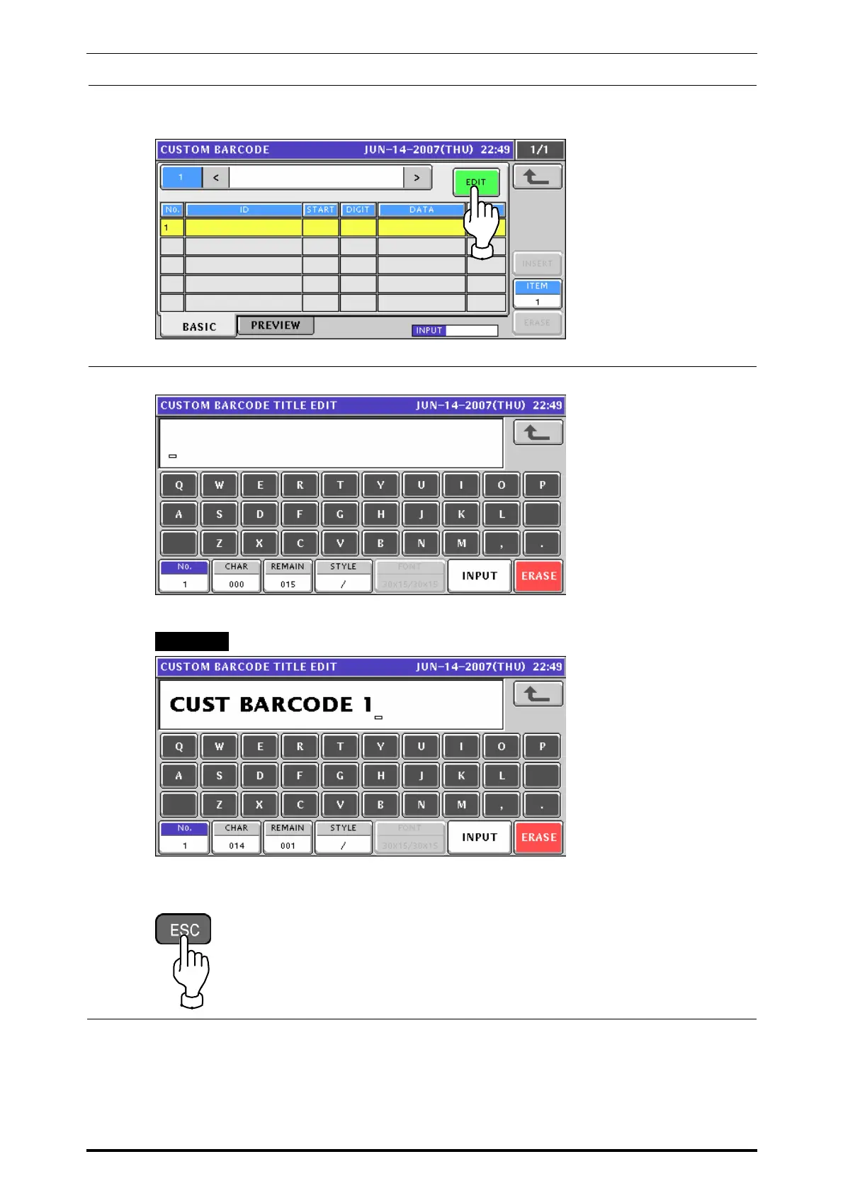 Enter a desired text according to the procedure described in Appendix “Text Editing”.