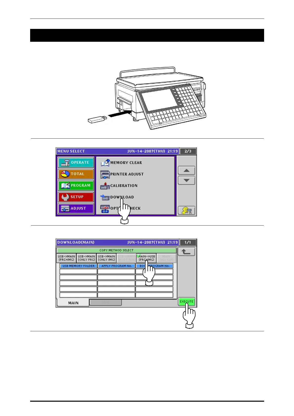 Press the “DOWNLOAD” field on the screen to display the Download (Main) screen.