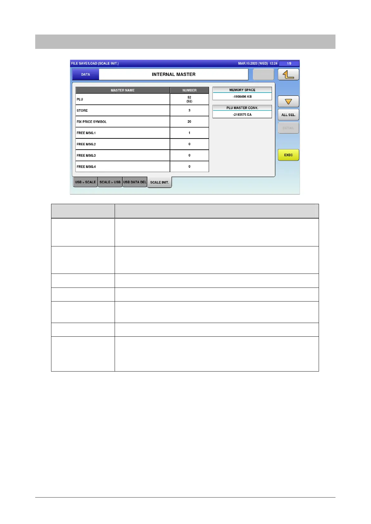 MEMORY SPACE Display the memory space inside the scale in kilobyte (kB).