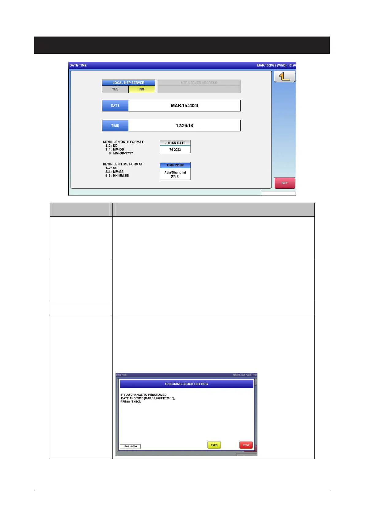CHECKING CLOCK SETTING dialog appears to ask whether to