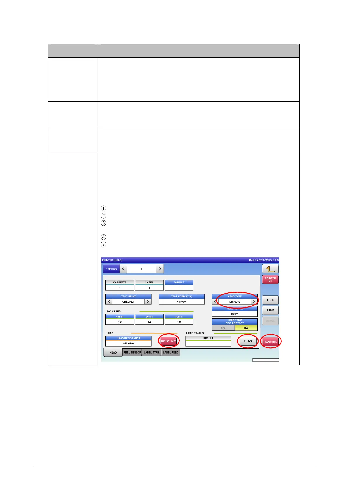 HEAD INIT. Initialize the thermal head.
