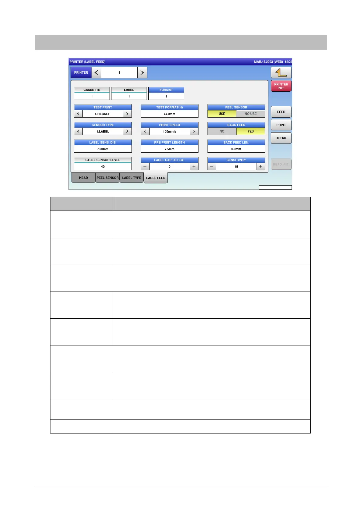 DETAIL Transfer to the label sensor details screen.