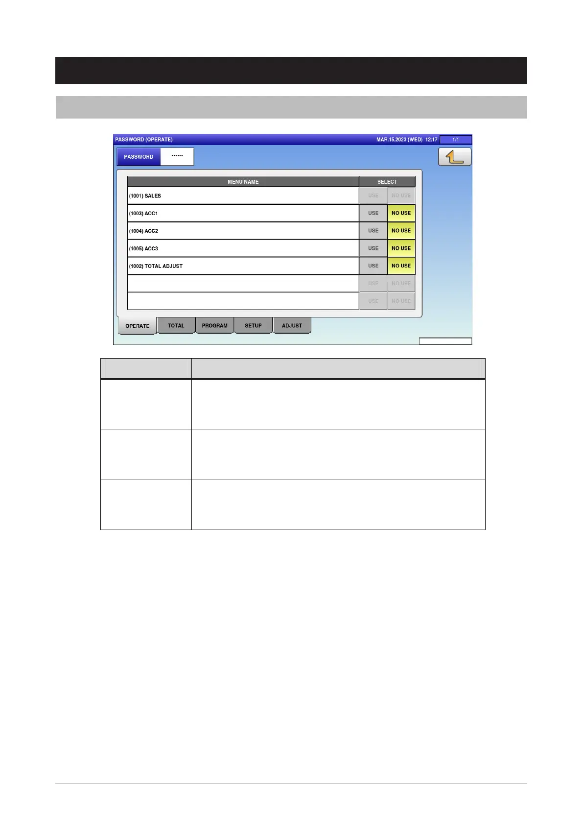 SELECT Select whether or not to lock with the password.