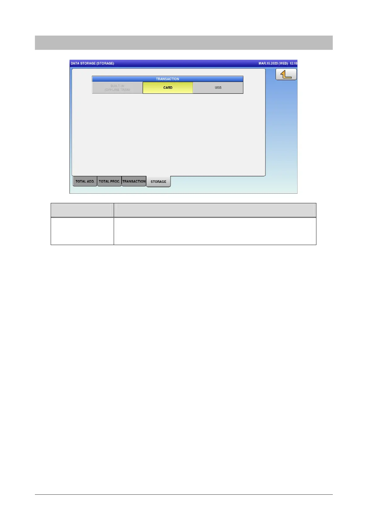 TRANSACTION Select where to save the transaction.