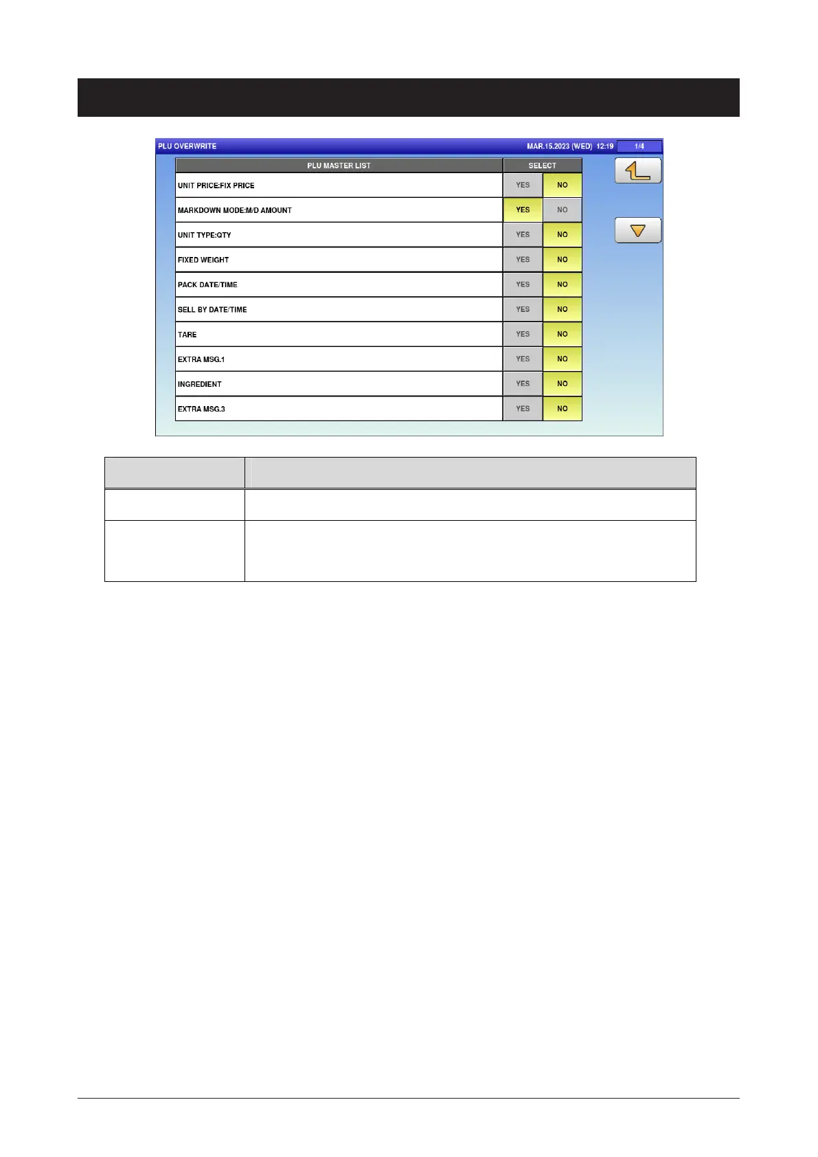 PLU MASTER LIST Display the PLU master list.