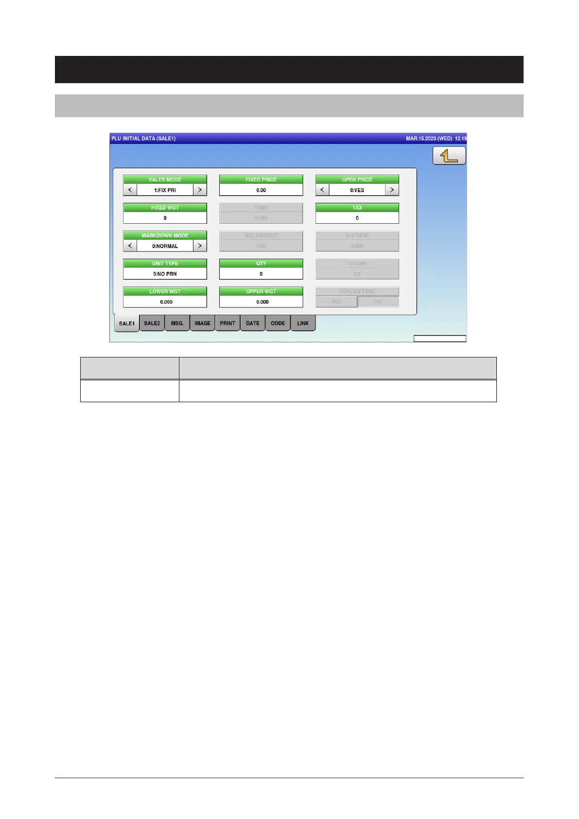 (Each item) Enter the initial val ue to newly create the PLU master.