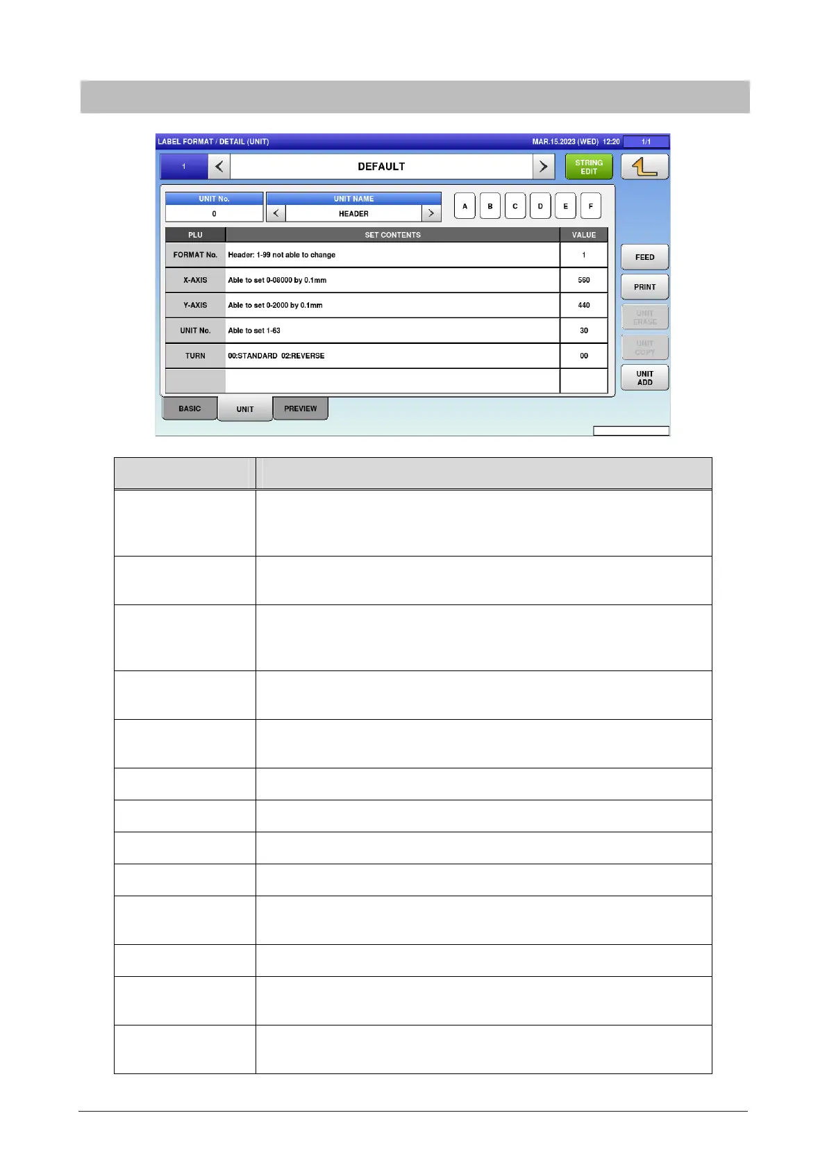 UNIT COPY Enter numerical number and press COPY to copy the said numerical