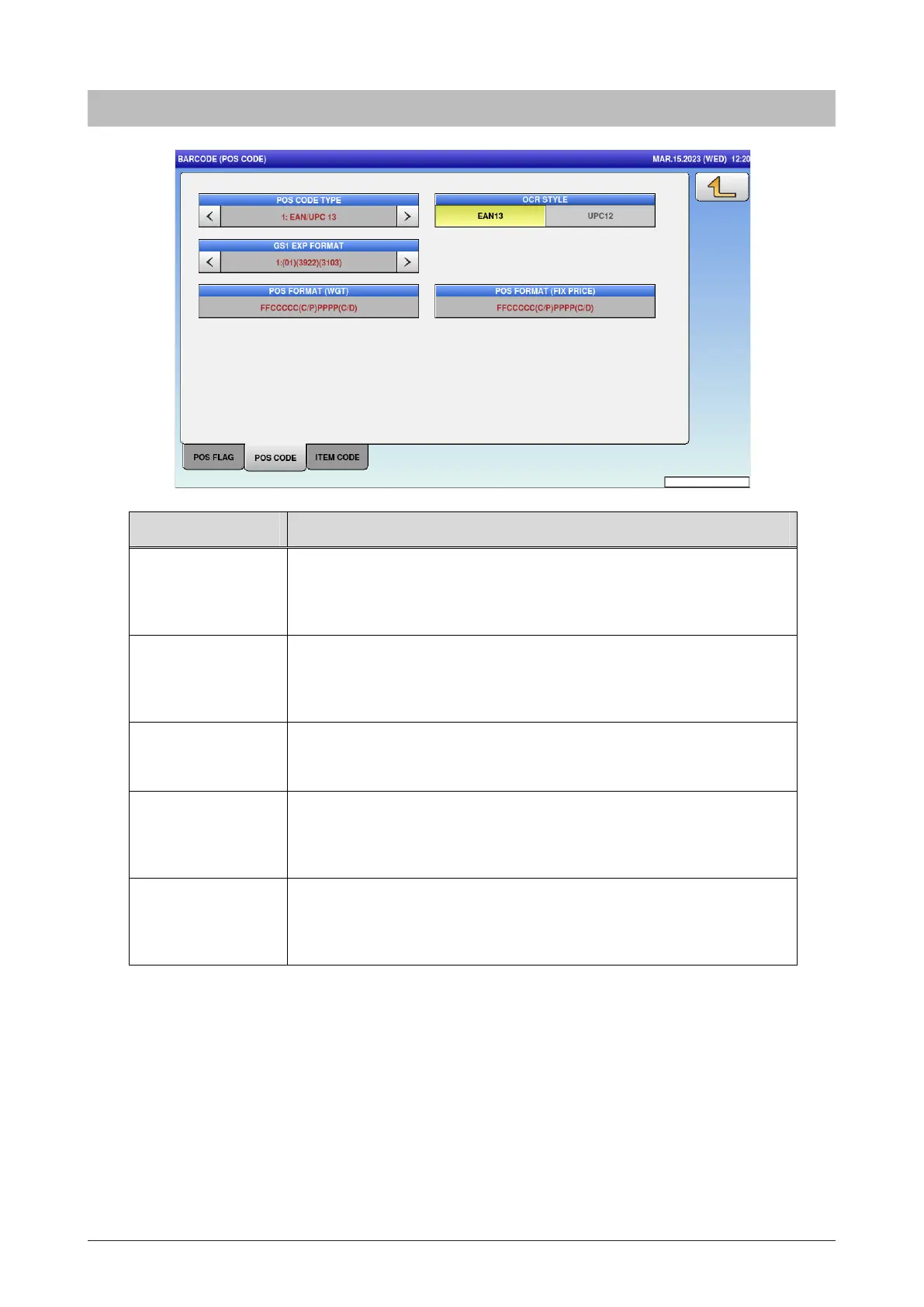 OCR Select the POS code type.
