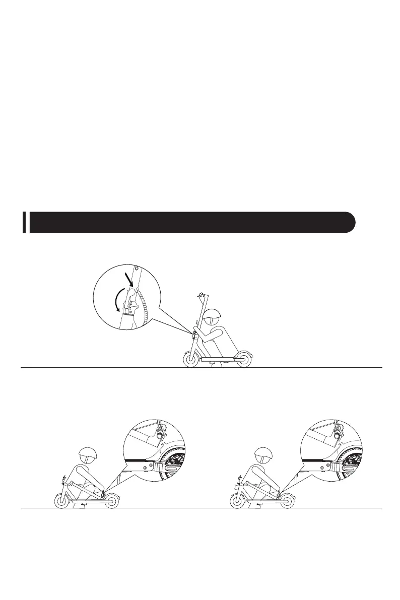 ● Überprüfen Sie den Scooter vor jedem Gebrauch. Wenn Sie gelockerte Teile, Warnungen bei