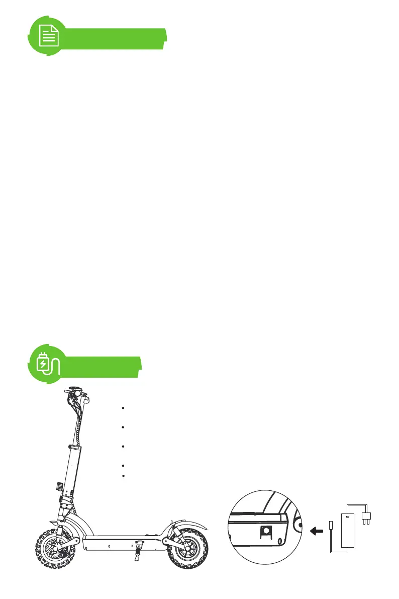 ● Check the scooter before every use. When you note loosen parts, low battery alerts, excessive