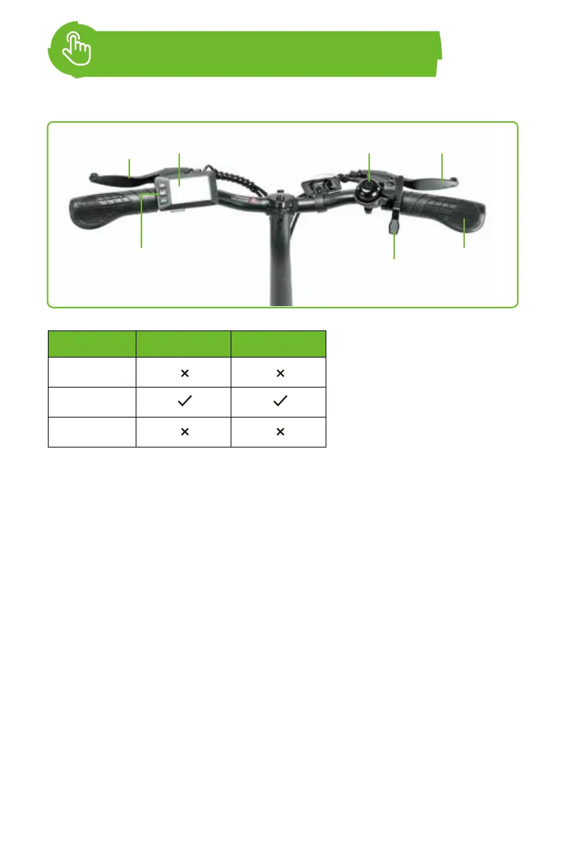 ● Para detener la E-bike: suelte el acelerador y apriete las palancas de freno