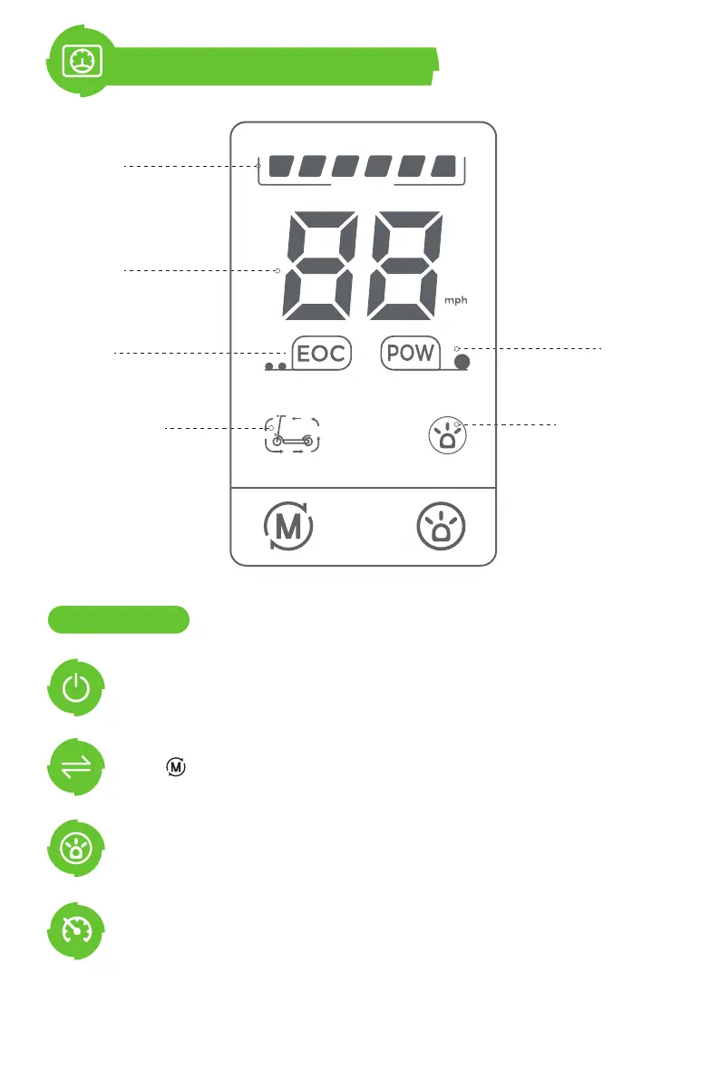 Long press the front light for 5 seconds to turn on/off cruise control.