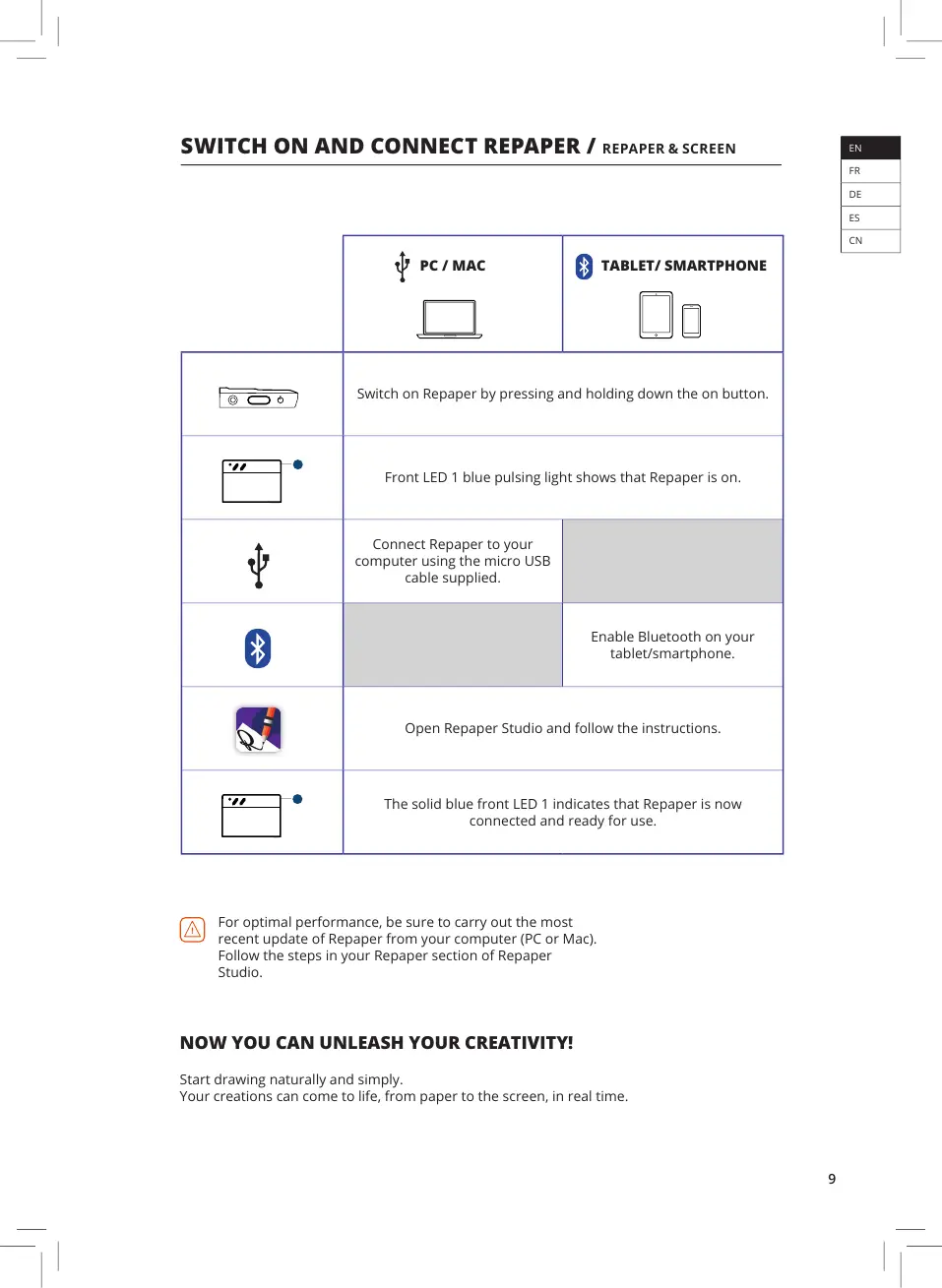 SWITCH ON AND CONNECT REPAPER / REPAPER & SCREEN