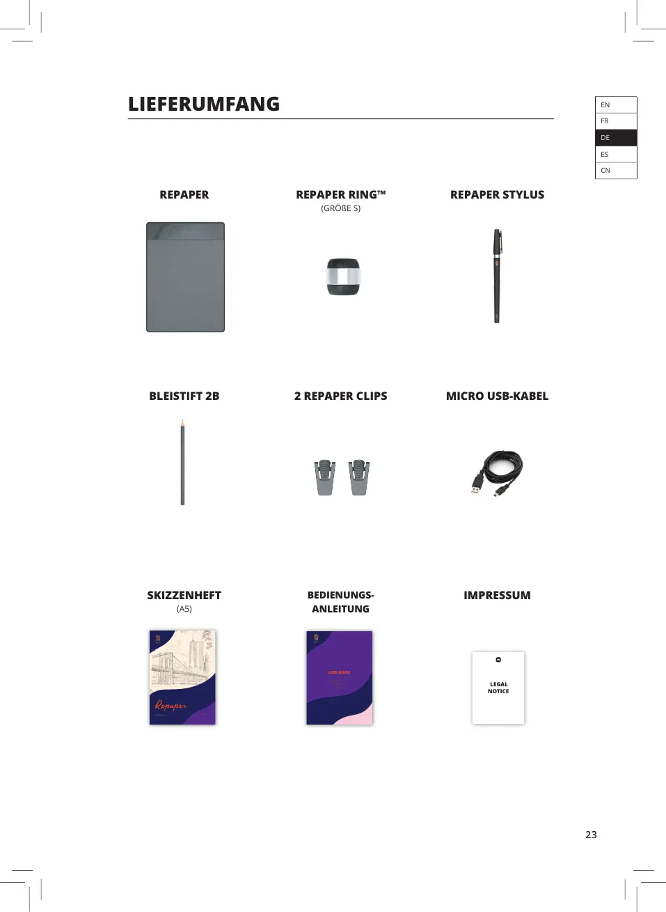 iskn REPAPER - Legal Notice; Lieferumfang; Micro Usb Cable