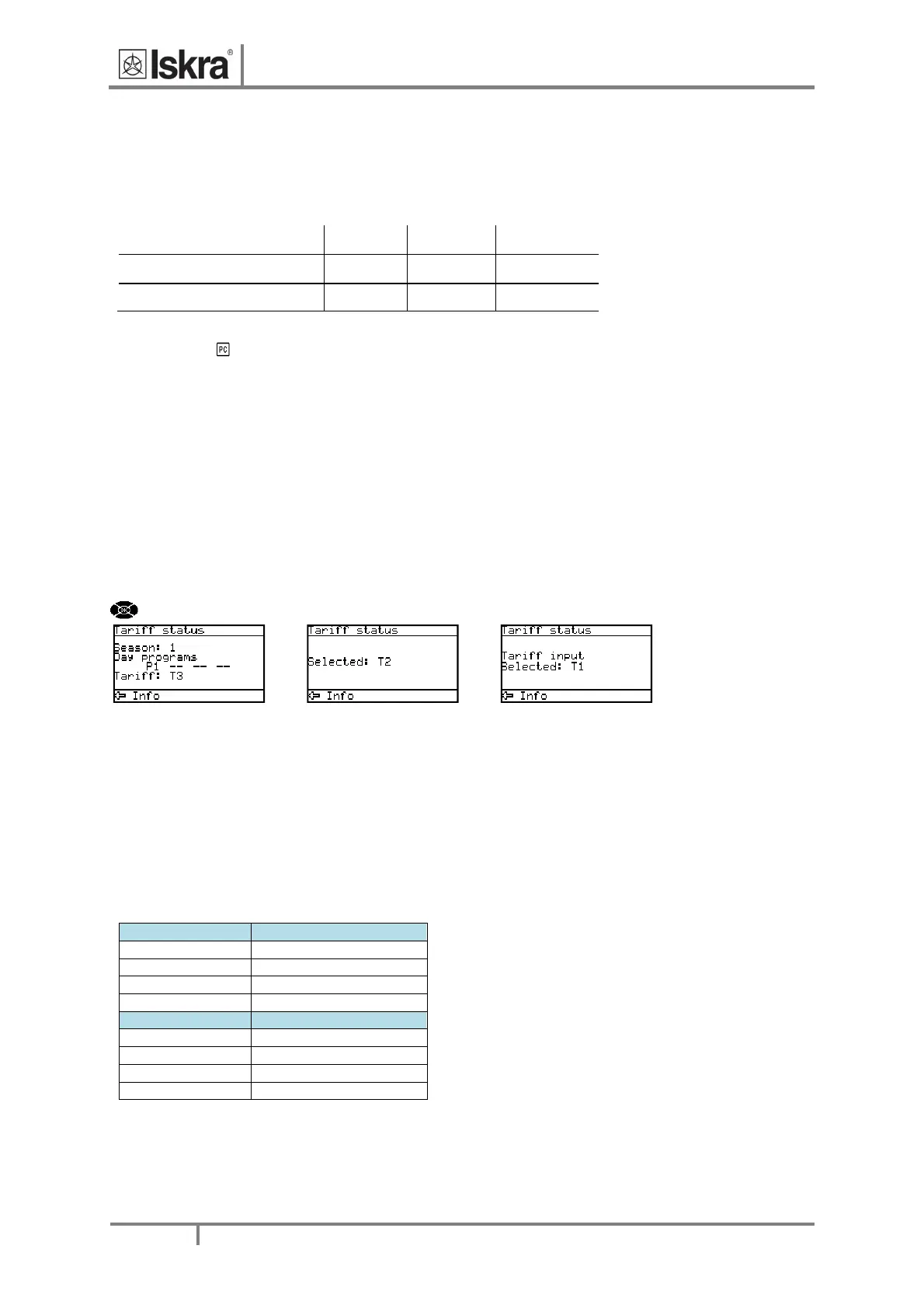 TariffstatusisdisplayedintheInfomenu.