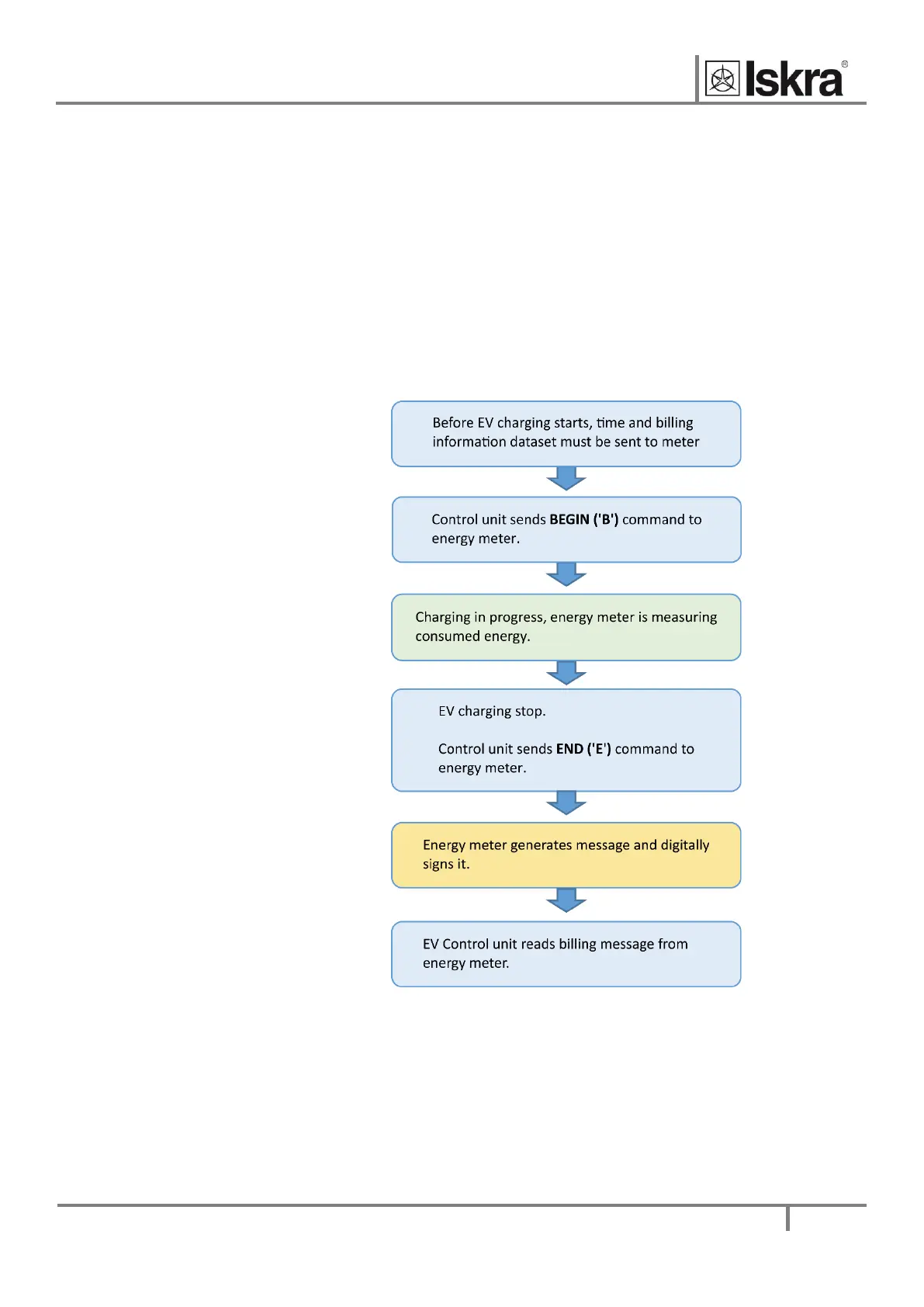 EV charger control unit is responsible to send start and stop command to energy meter. Energy meter