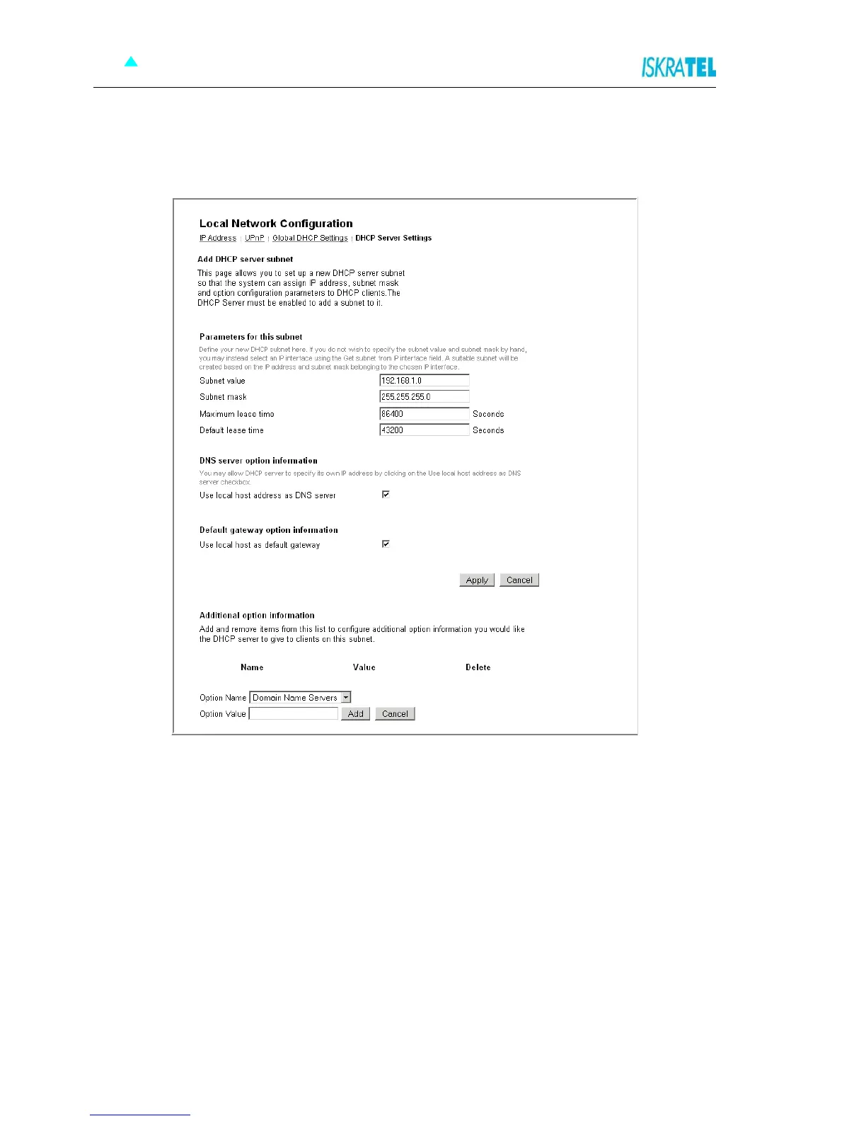 1. On the DHCP Server Settings page, click Add Subnet. The following page is displayed.