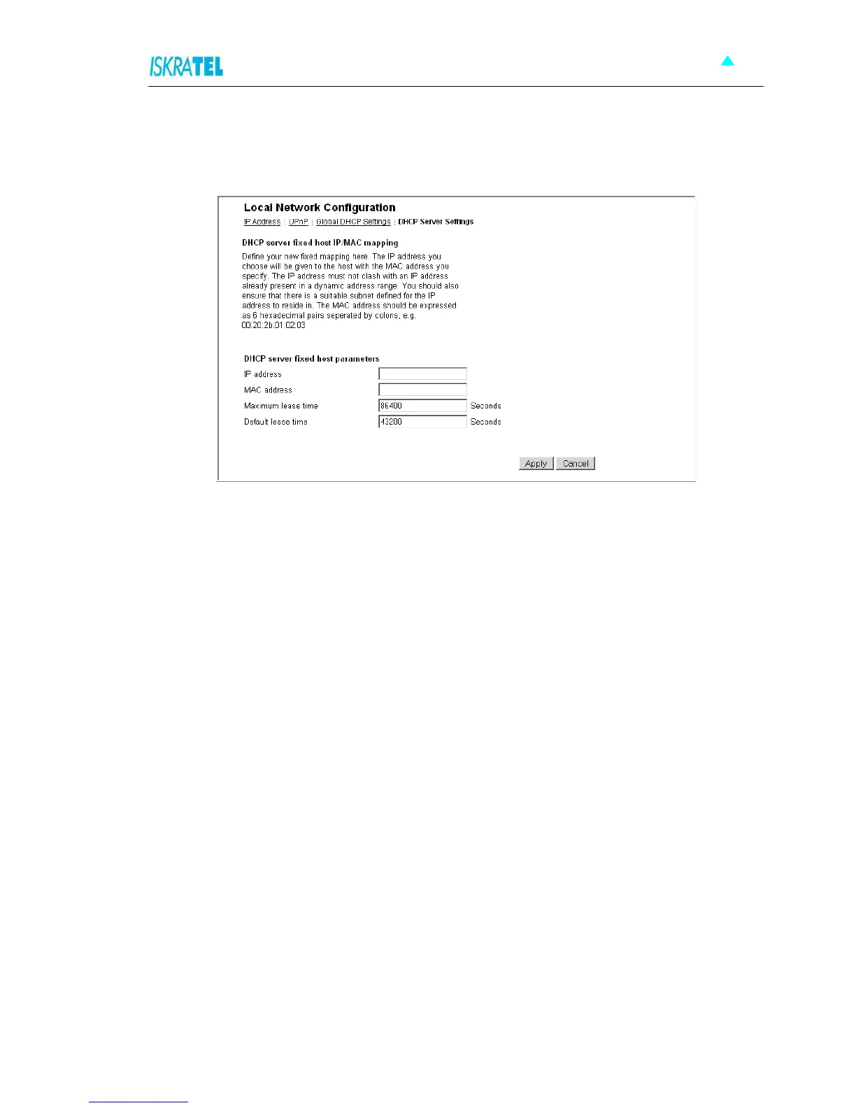 1. In the DHCP Server Settings page, click Add Fixed Host. The following page is displayed: