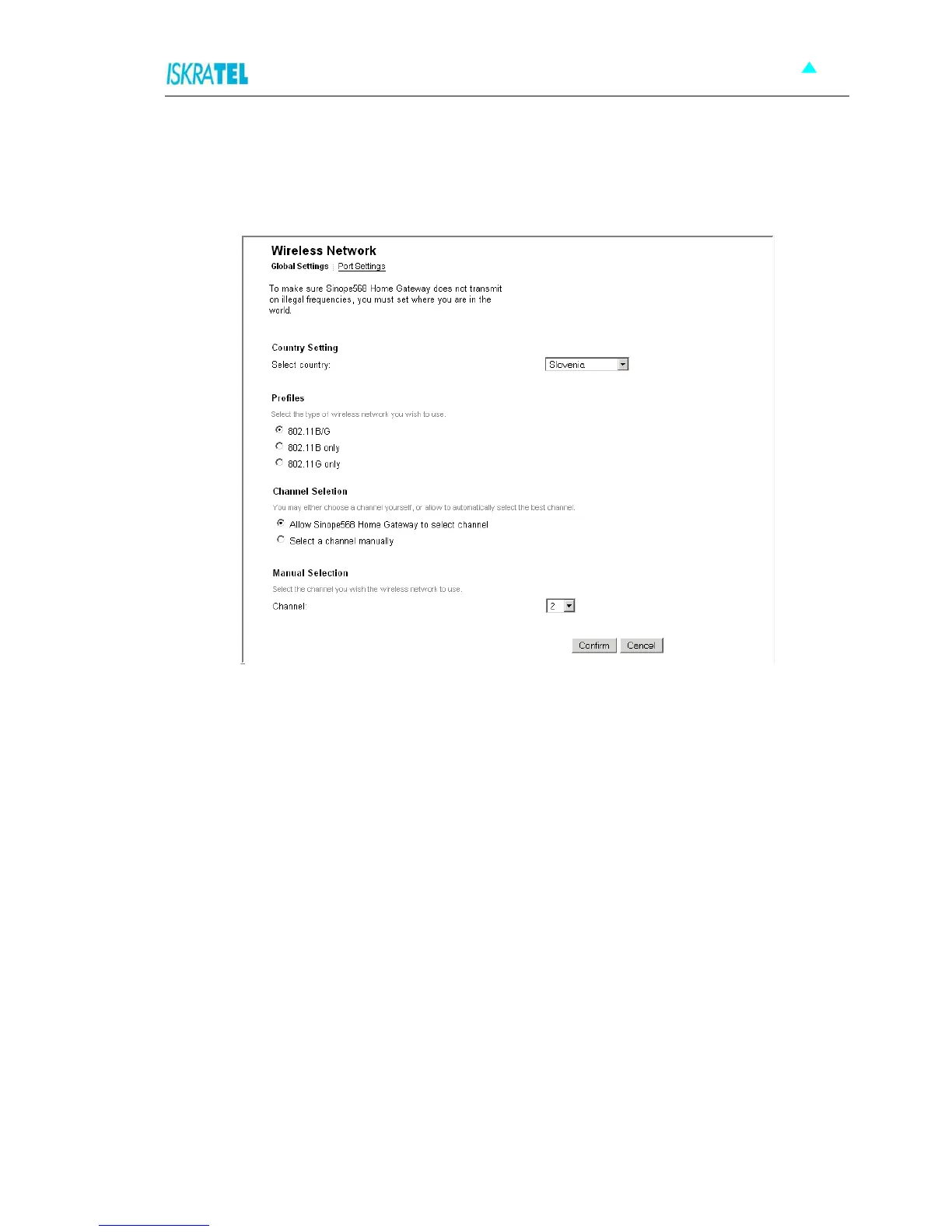 1. Select Configuration > Wireless Network. Click the Global settings tab. The following page is