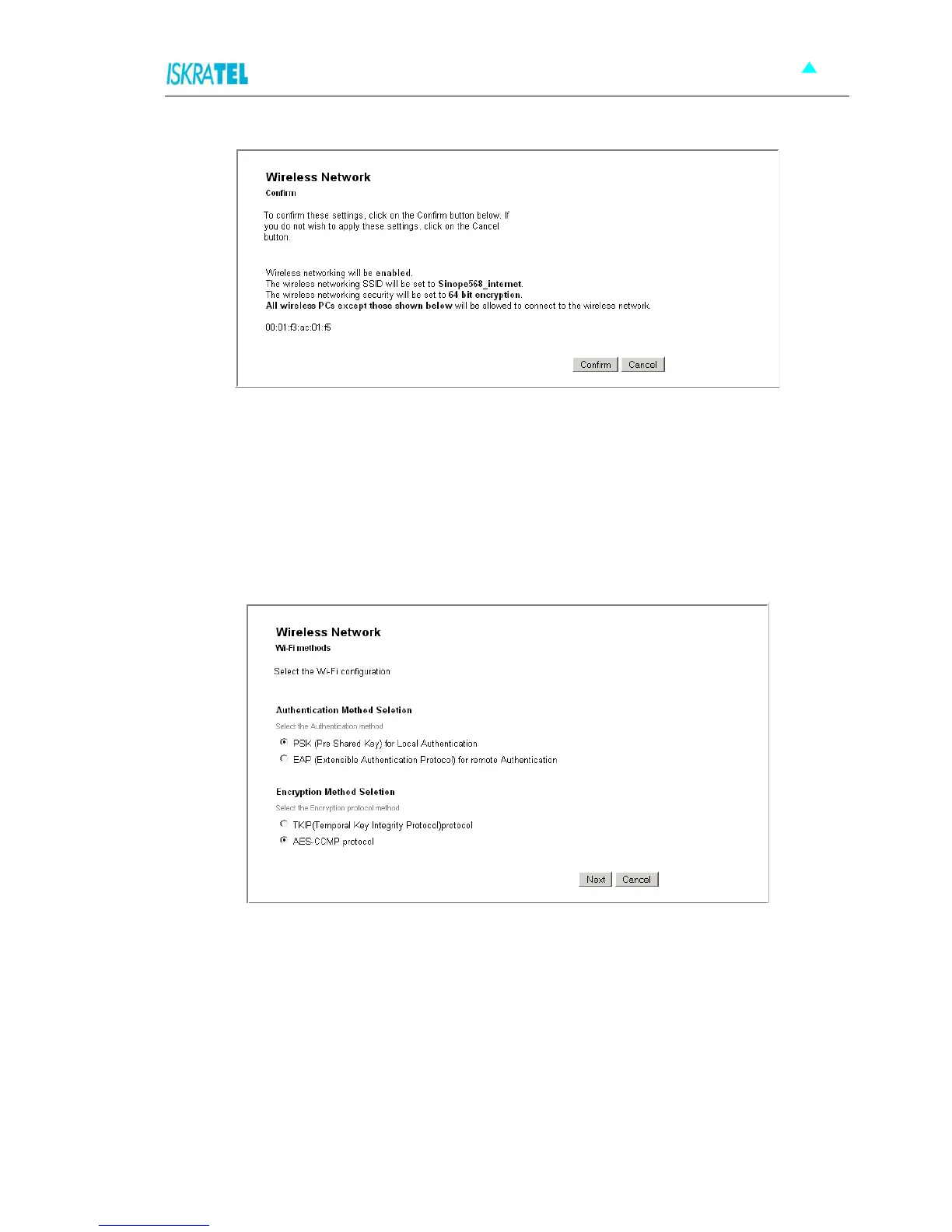 Figure 4-21: Wireless Network - Confirm settings