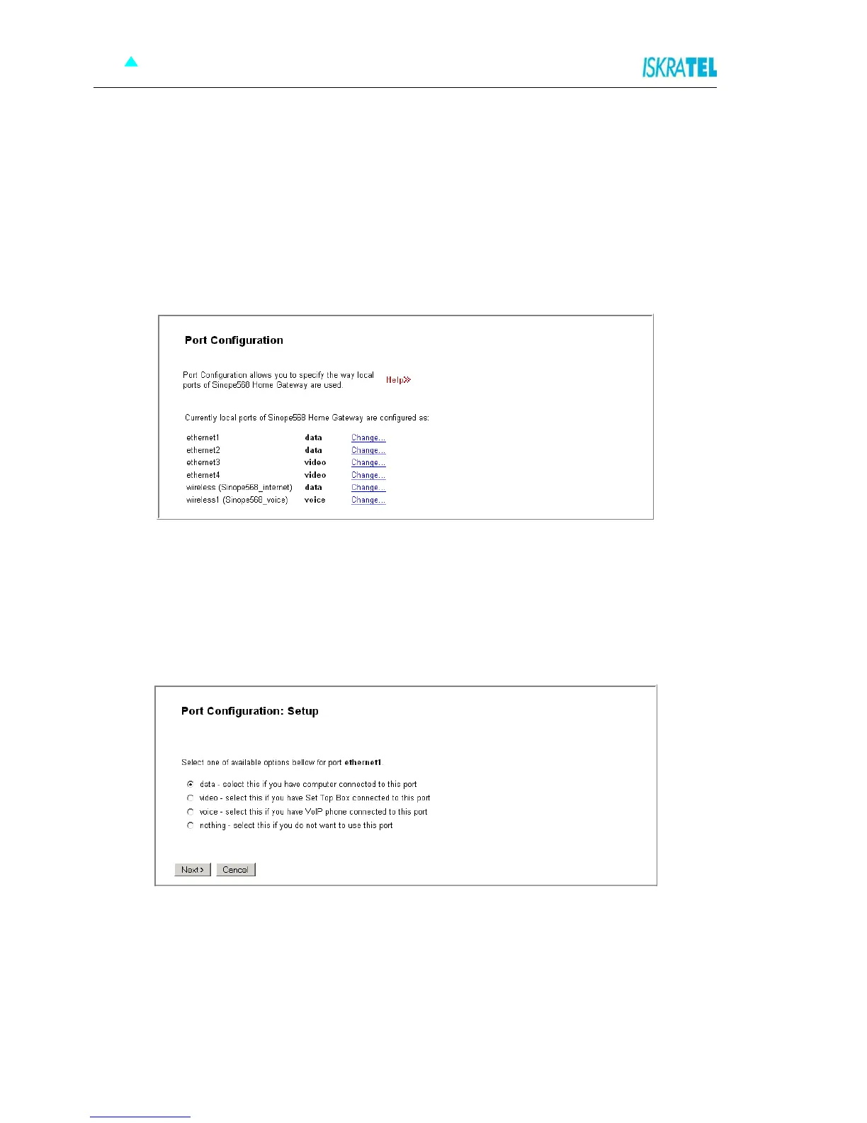 To view the current port configuration settings, click the Port Configuration option. The following page