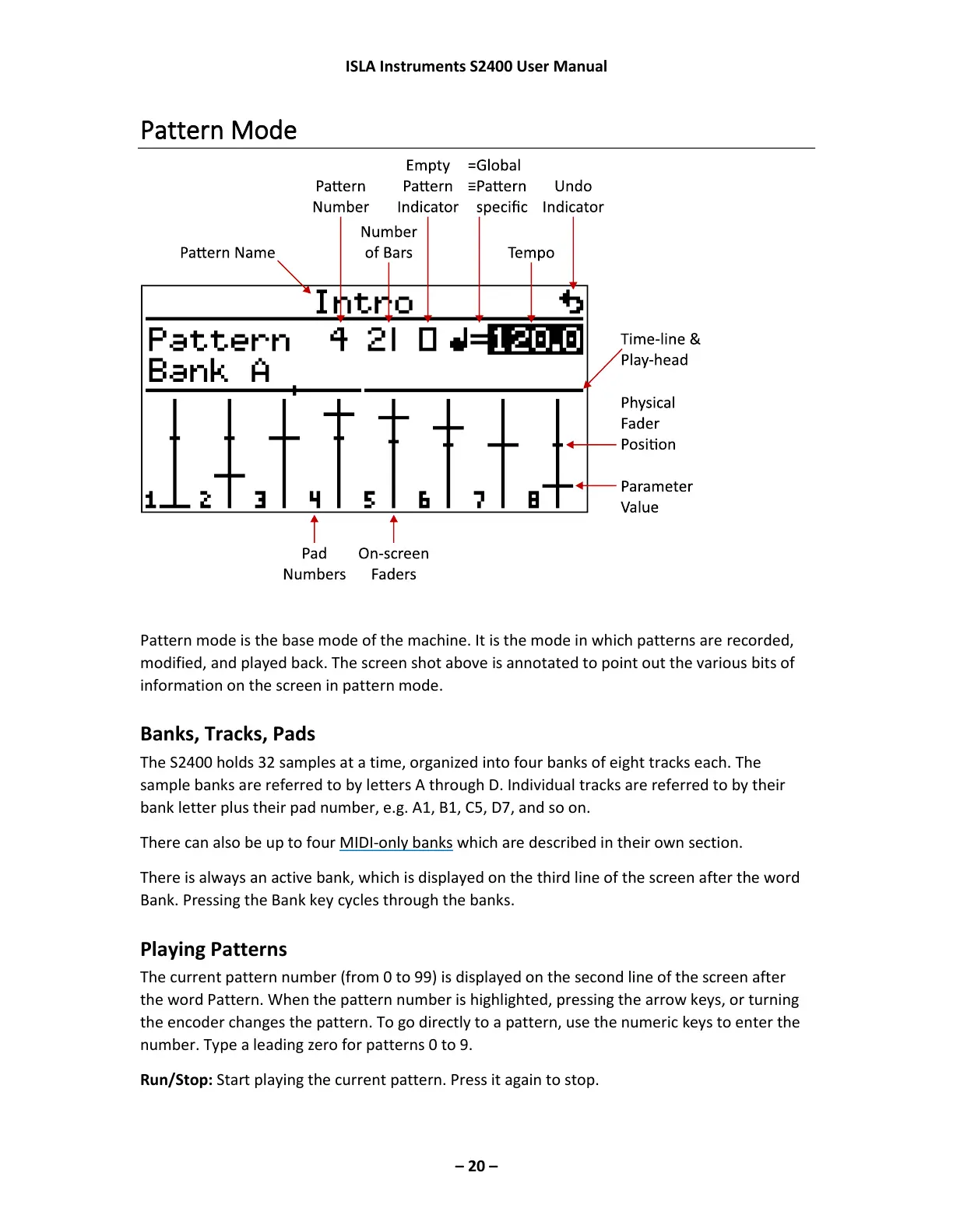 sample banks are referred to by letters A through D. Individual tracks are referred to by their