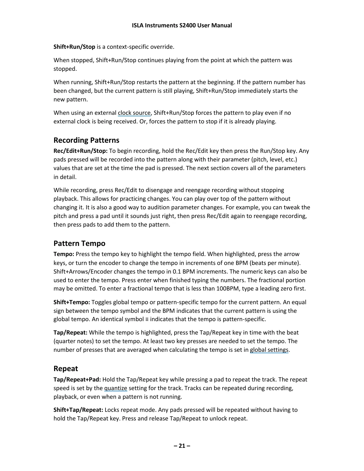 Shift+Tap/Repeat: Locks repeat mode. Any pads pressed will be repeated without having to
