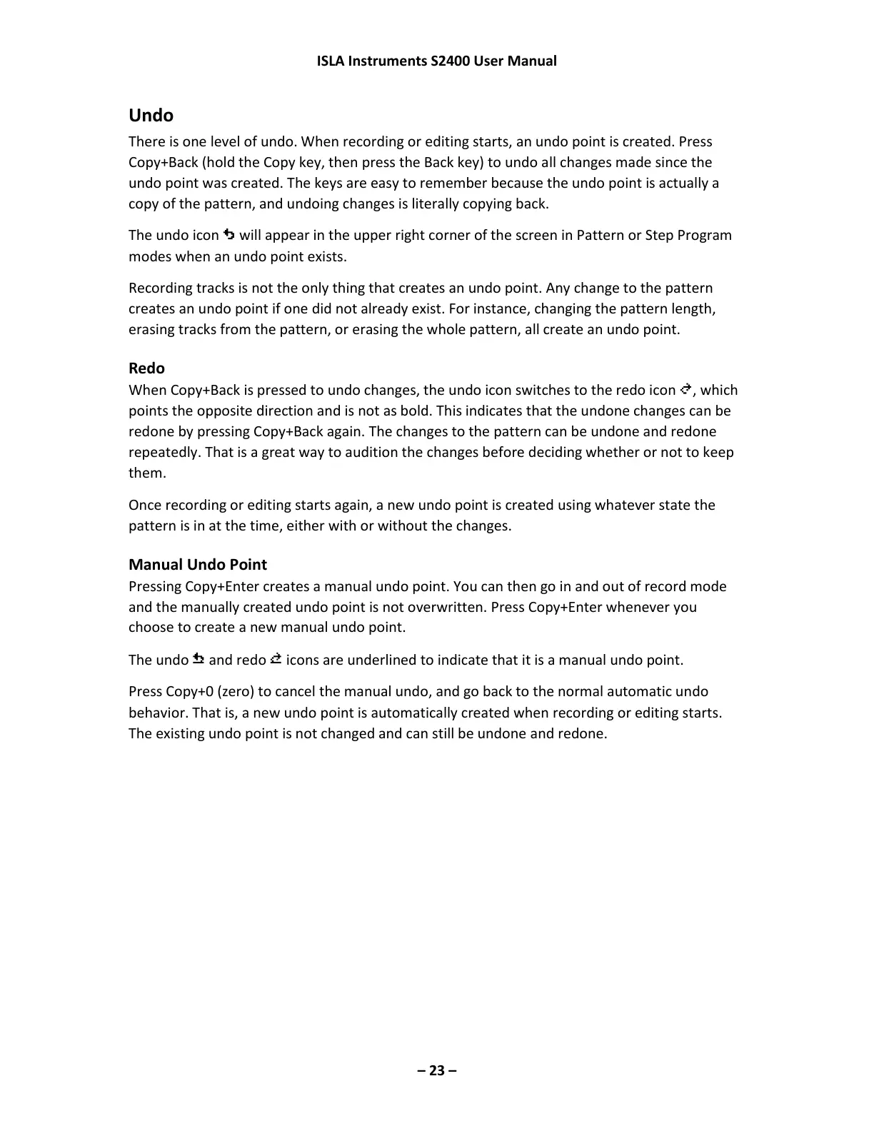 redone by pressing Copy+Back again. The changes to the pattern can be undone and redone