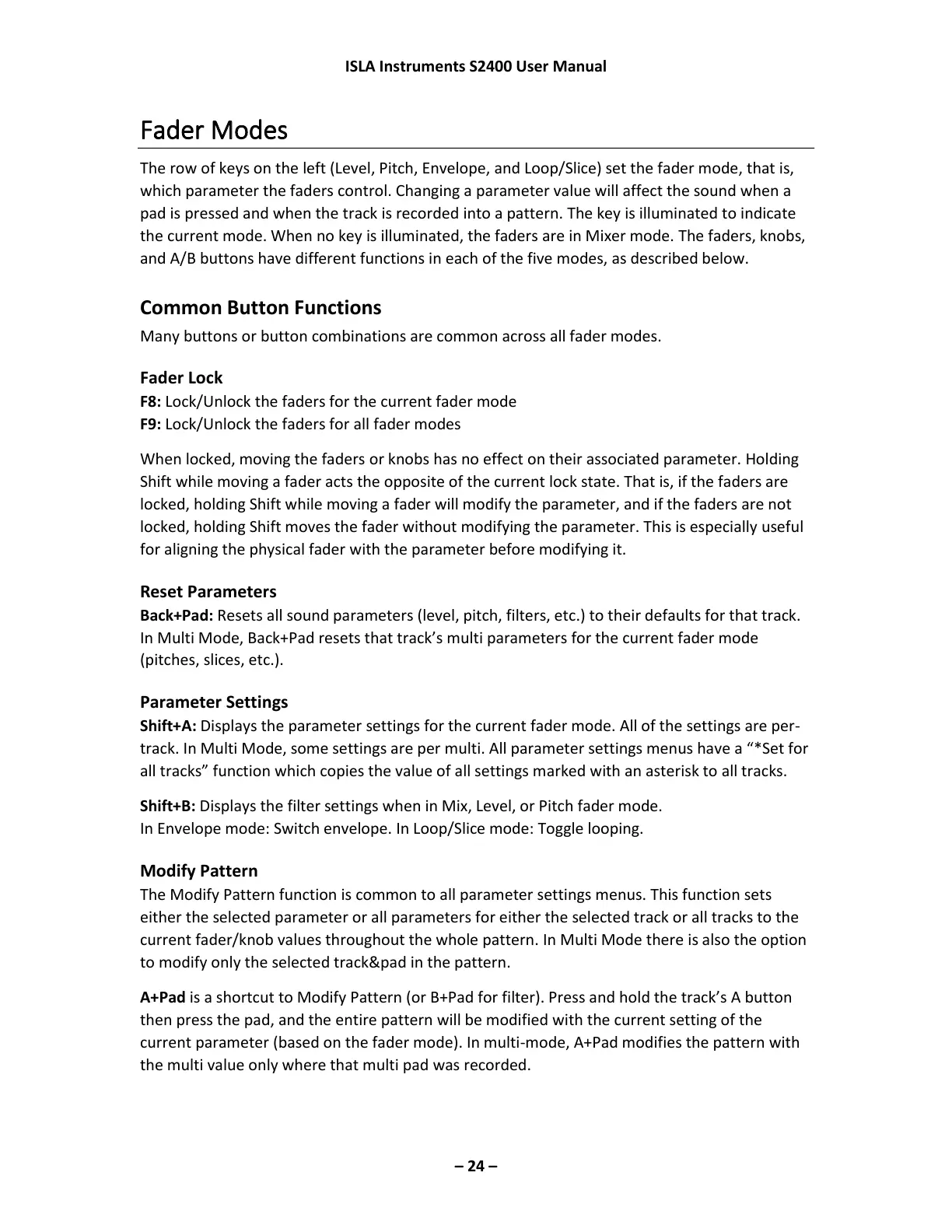 locked, holding Shift while moving a fader will modify the parameter, and if the faders are not