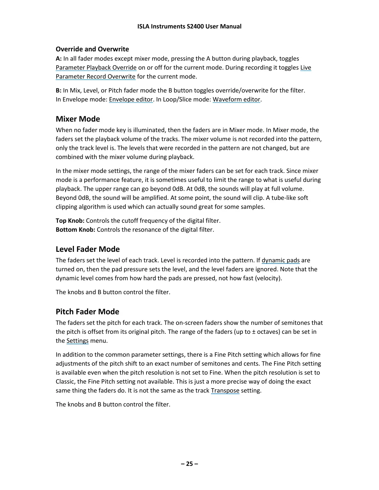 B: In Mix, Level, or Pitch fader mode the B button toggles override/overwrite for the filter.