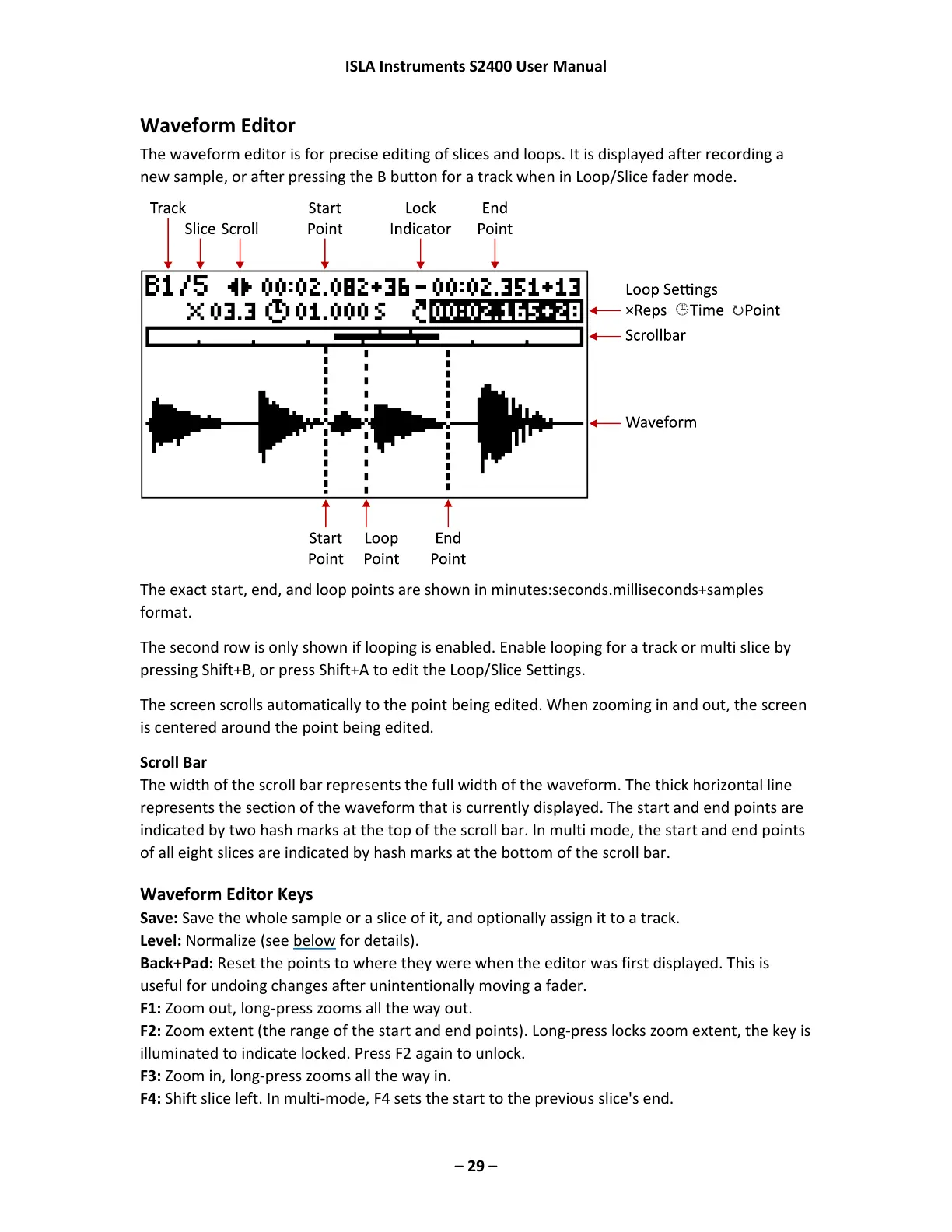 The waveform editor is for precise editing of slices and loops. It is displayed after recording a