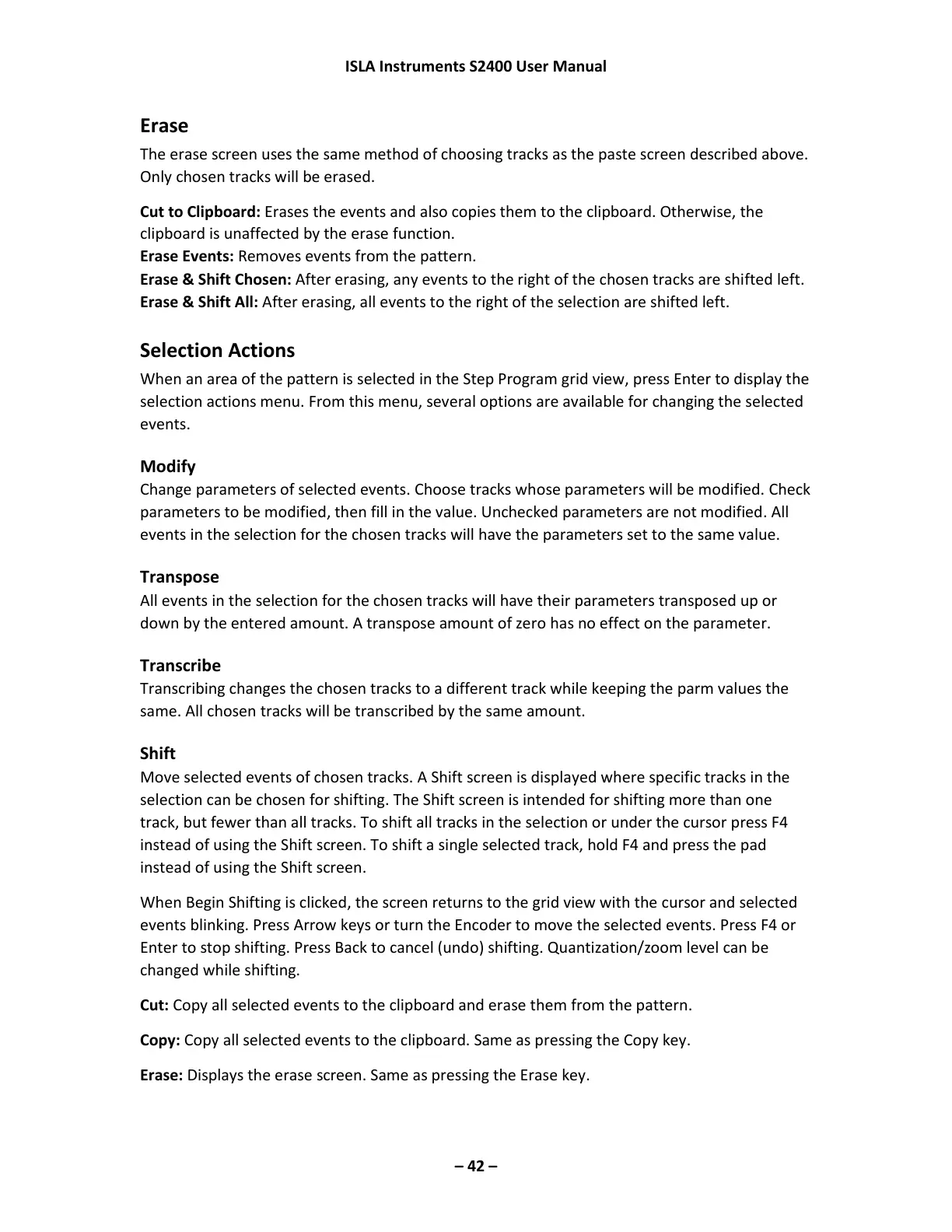 Erase & Shift Chosen: After erasing, any events to the right of the chosen tracks are shifted left.