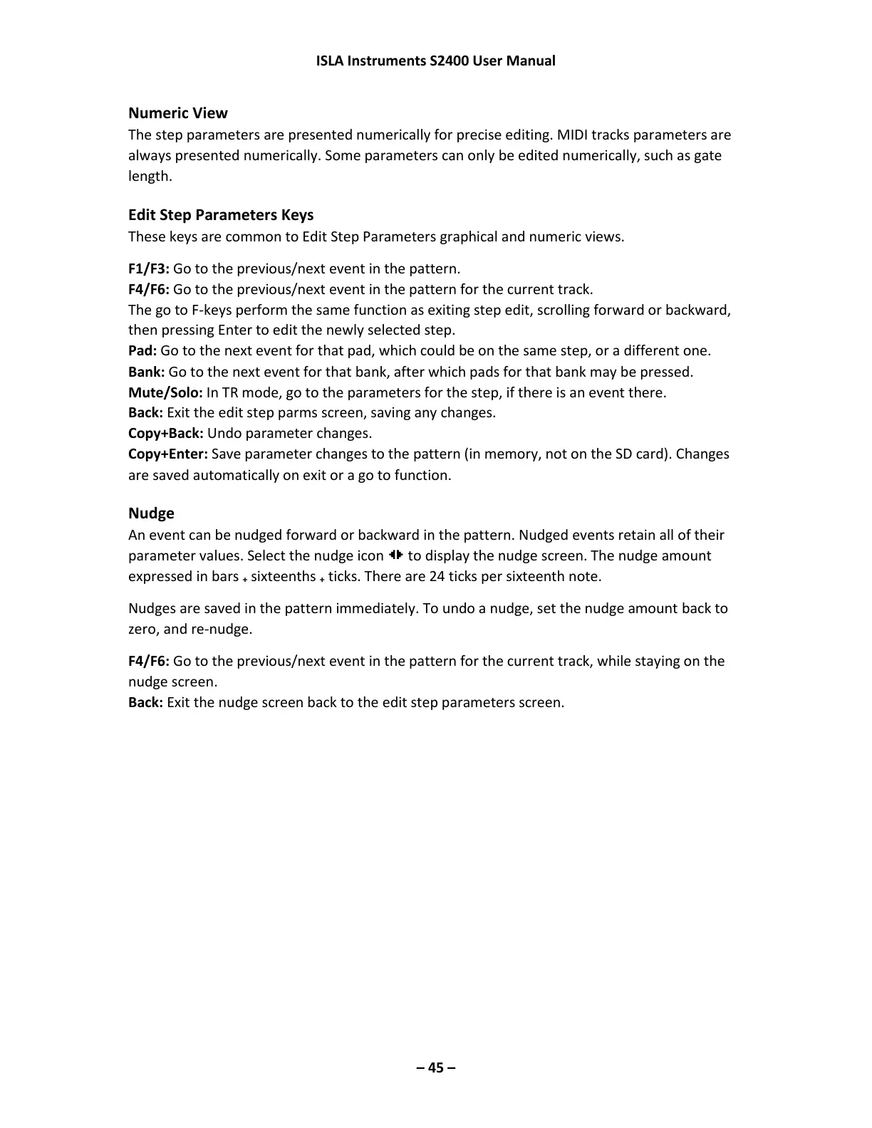 Back: Exit the nudge screen back to the edit step parameters screen.