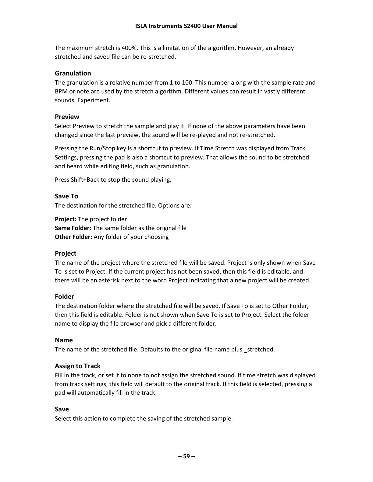 Select Preview to stretch the sample and play it. If none of the above parameters have been