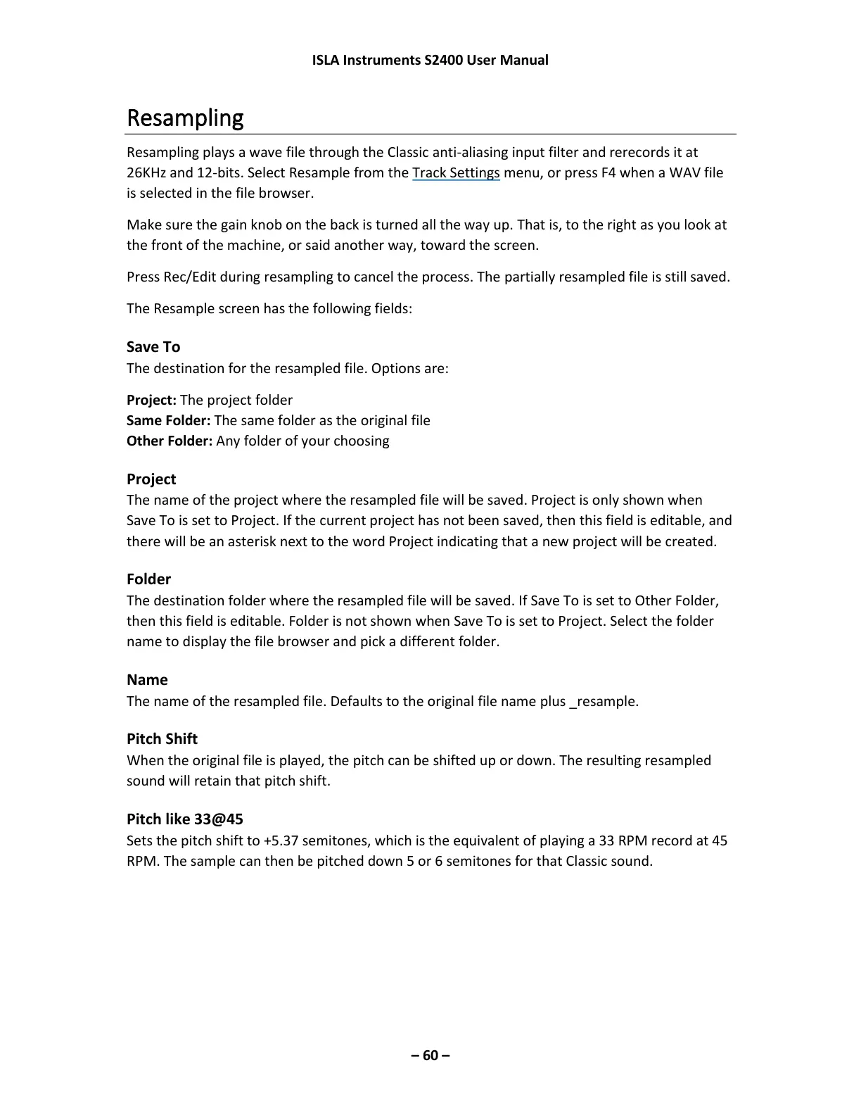 When the original file is played, the pitch can be shifted up or down. The resulting resampled