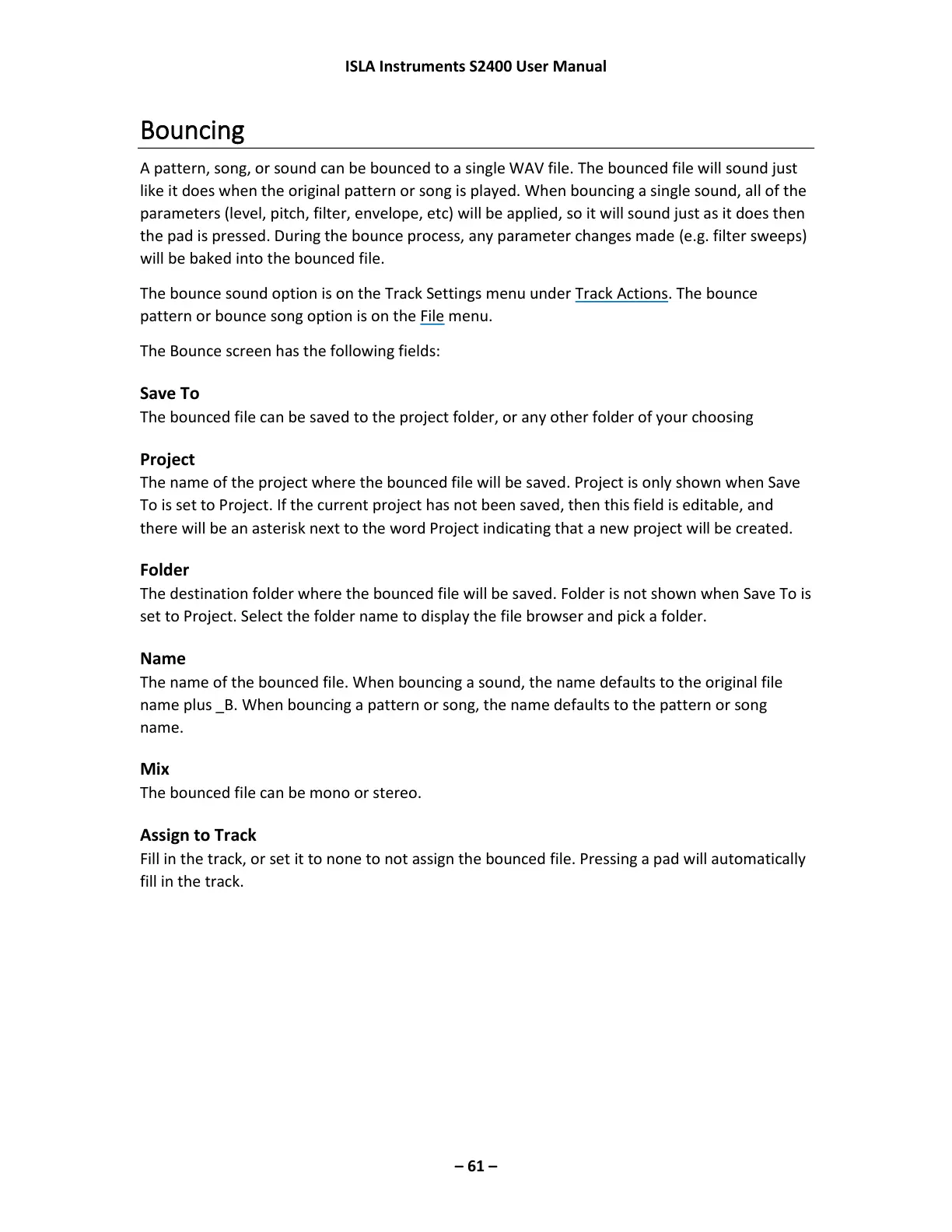 like it does when the original pattern or song is played. When bouncing a single sound, all of the