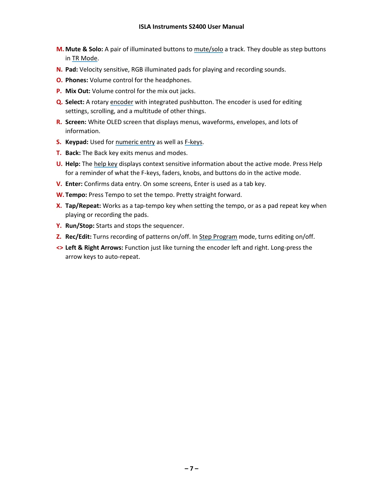 M. Mute & Solo: A pair of illuminated buttons to mute/solo a track. They double as step buttons