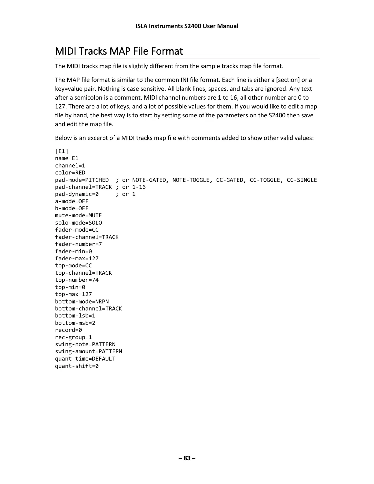 Below is an excerpt of a MIDI tracks map file with comments added to show other valid values: