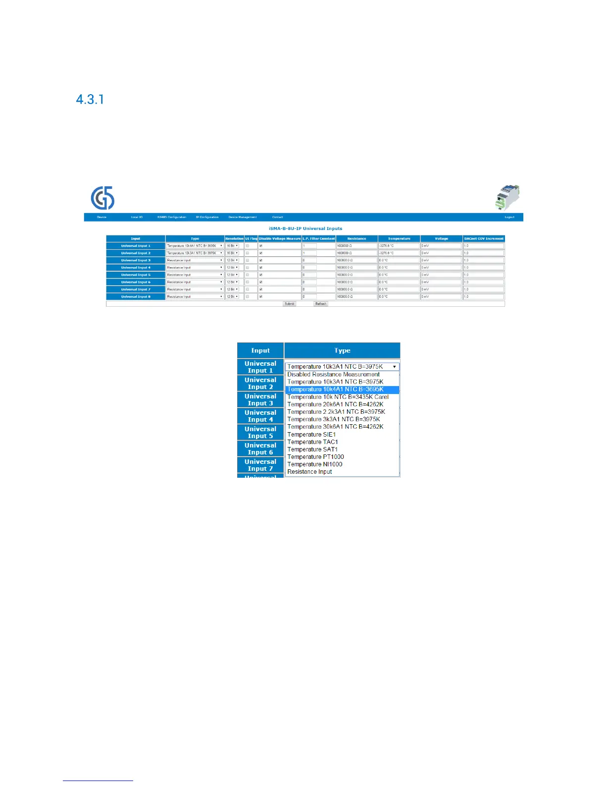 Inputs. To open this page please navigate to Local IO tab and choose Universal Inputs from