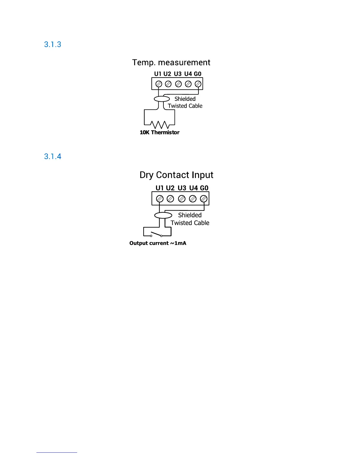 iSMA iSMA-B-8U-IP - Connection of Universal Input to Measure Temperature; Connection of Universal Input as a Digital Input (Dry Contact)
