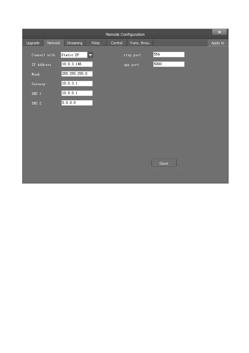 of stream ports is 3479~7999 and 554, default is 554. The range of application ports is