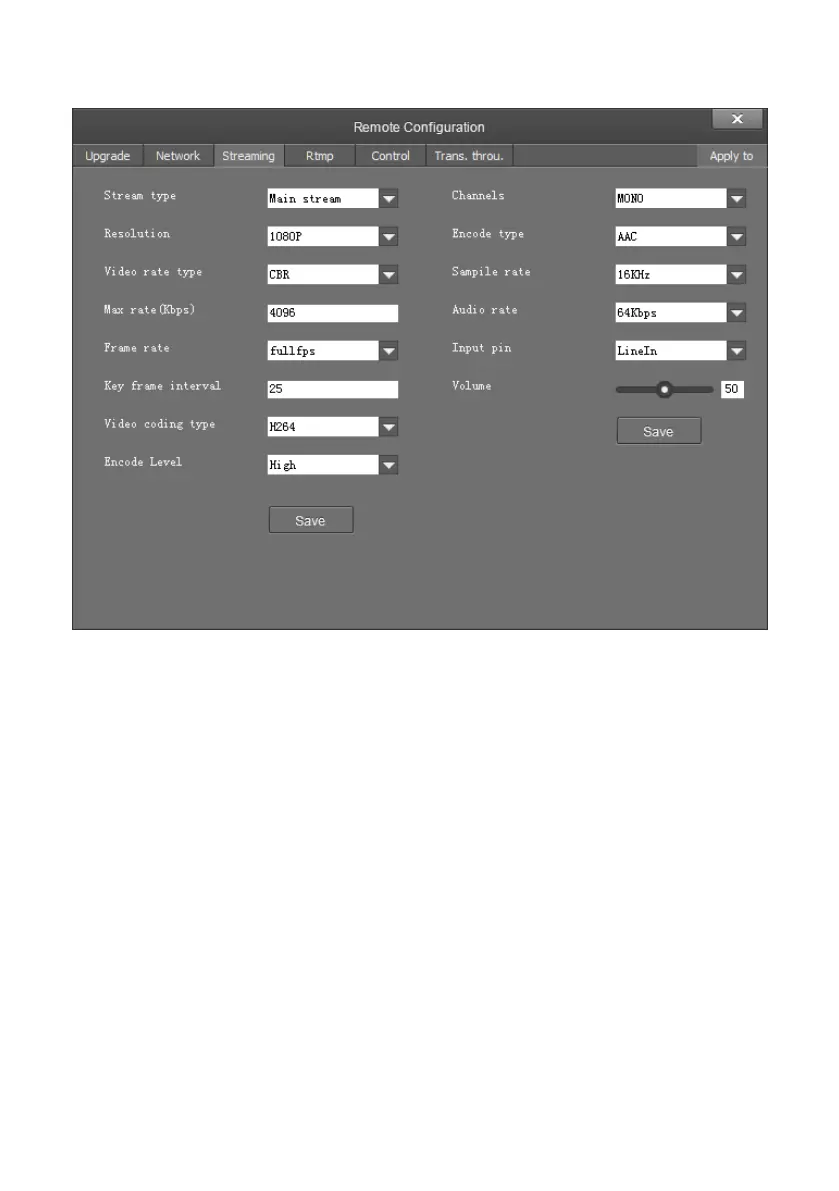 Encode level: choose from BaseProfile、MainProfil and HighProfile.